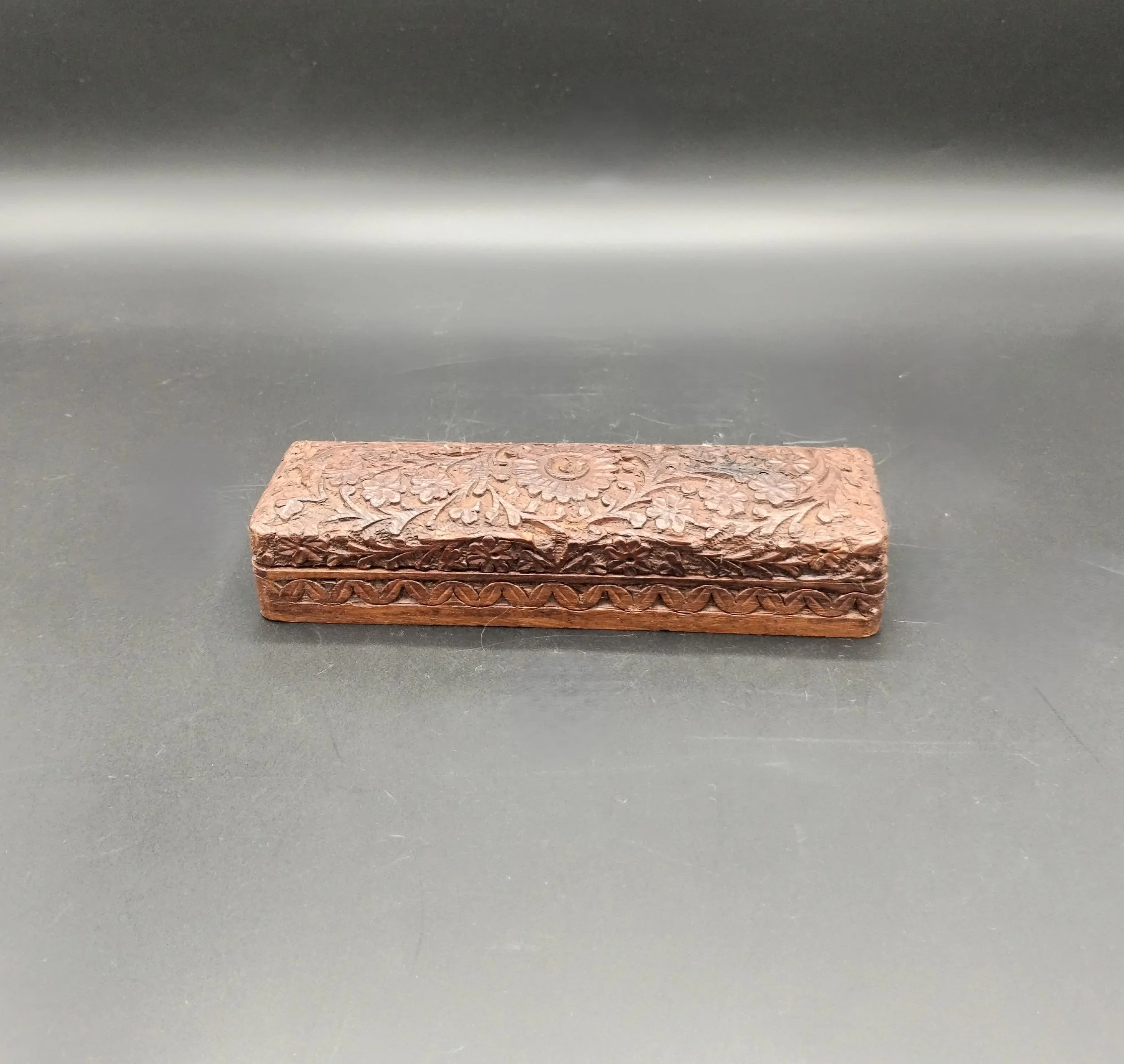 Caixa em diversas madeiras e pegas em bronze. Com etiqueta que indica "Palais Royal nº131, Taulin, Ft. de Necessaires, tient la cutellerie fine, Paris", correspondente à casa Taulin, situada nas conceituadíssimas Galerias do Palais Royal, sendo esta casa reconhecida pelas suas peças utilitárias de luxo, tais como escritórios, barretinas e necessaires, entre outras. Estas galeriasa, criadas no séc. XVIII pela família real de Orleães, eram consideradas a epítome do luxo, onde as classes altas adquiriam toda a variedade de produtos de altíssima qualidade e requinte e que a classe média visitava de uma forma quase aspiracional. De entre os estabelecimentos presentes no local, a Casa Taulin era reconhecida tanto pelos seus excelentes e delicados produtos, como pela sua clientela, podendo mesmo dizer-se que rivalizava com casas como a Tahan e a Vervelle.