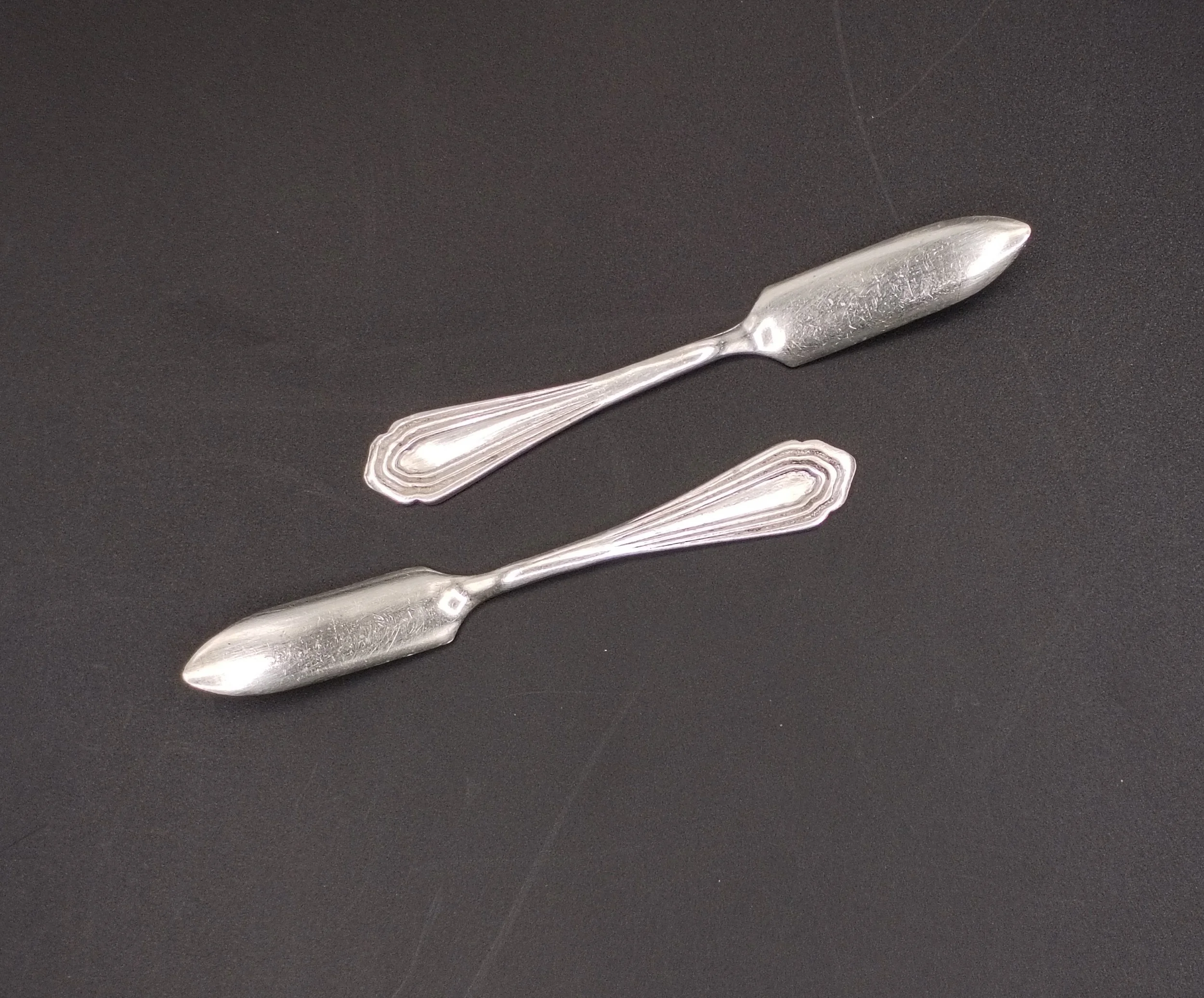 Prata 800/1000 com contraste Cabeça de Diana 3 A dentro de cartela polilobada (facas) e Cabeça de Cão 3 A em cartela hexagonal (Viena, Austro-Hungria, 1872-1922), ambas para uma pureza de 800/1000, contraste de ourives Johann Rothbauer (JR) (reg. 1887-1924) e segunda marca de ourives, Águia Bicéfala.