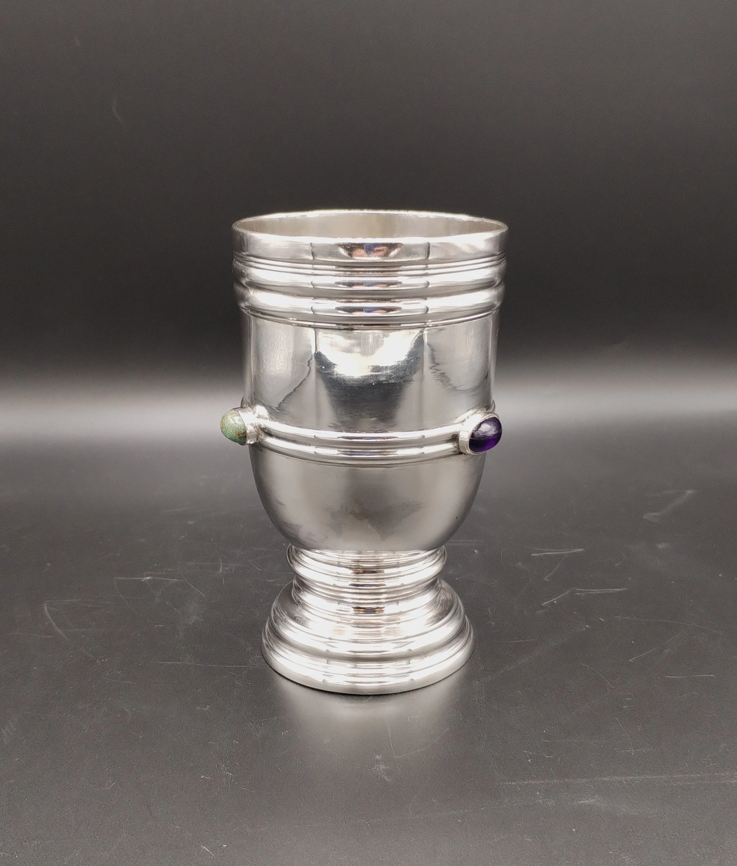 Prata 833/1000 com contraste Águia 833 (1938-1984) de Lisboa da Joalharia J.N. Cunha - Lisboa. Com aplicação de moeda de 400 réis com a efígie de D. Maria II (1836)