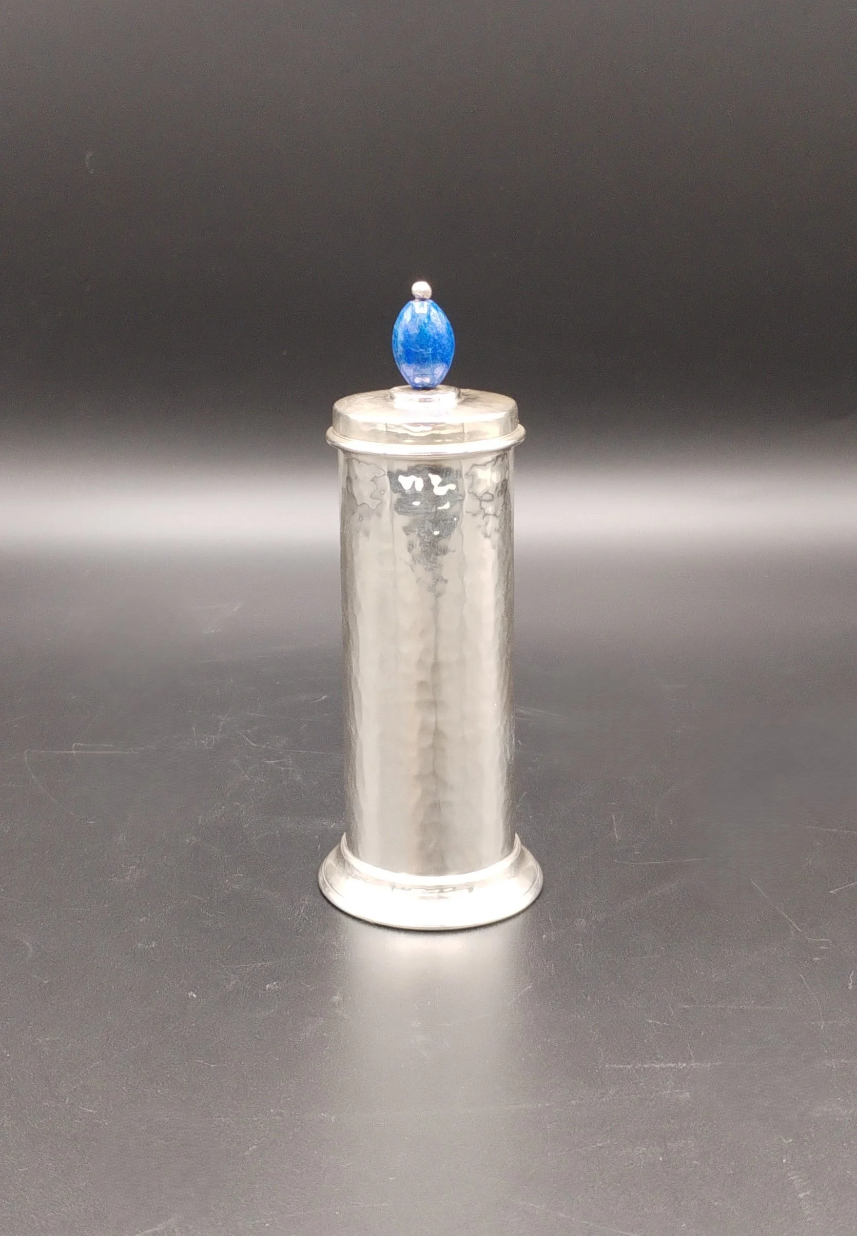 Prata 925/1000 com contrastes da cidade de Birmingham em uso em 1913 e de ourives do mesmo período. Composto por dois polvilhadores para pimenta, dois saleiros com colher e uma mostardeira. Com almas em vidro azul.
